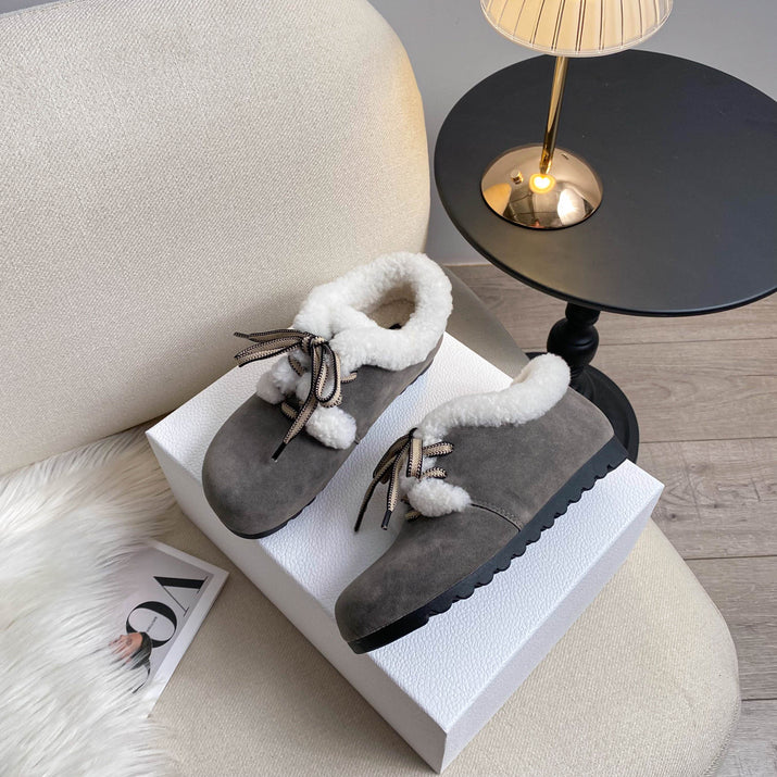 Our Hannah Lace-Up Shoes combine rustic charm with plush comfort, keeping your feet snug and stylish all season long.